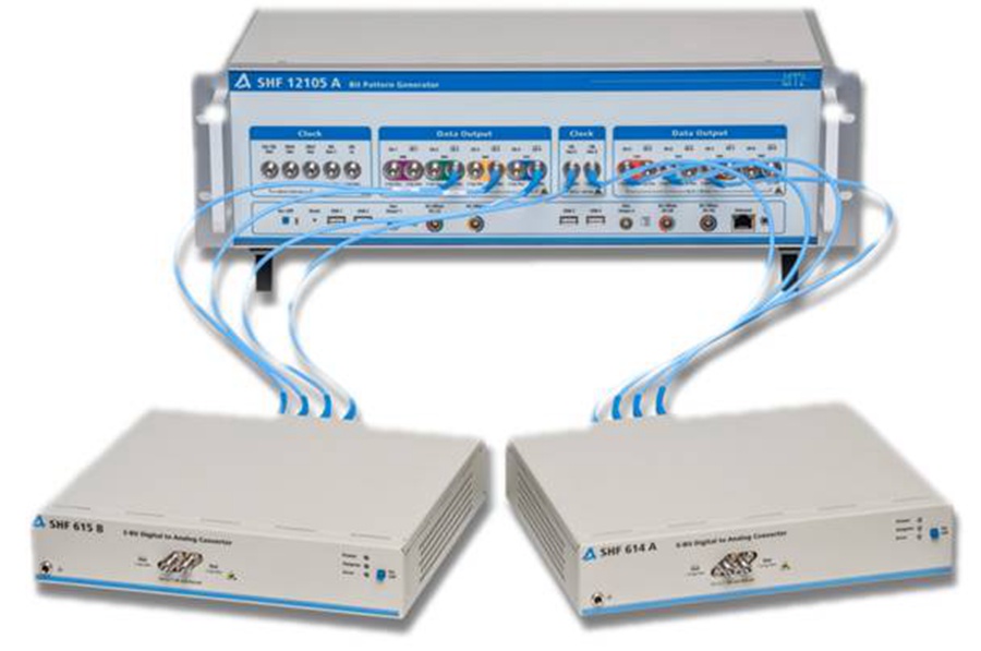 ??? SHF公司,2016年9月重磅推出全球領先的512G超高速碼型發生儀SHF12105A,8通道同步并獨立可調(單通道碼率6~64Gbps),最高容量可達到512Gbps,為下一代400G/1T光通信系統,模塊和器件研究、開發和測試提供了強有力的硬件支撐,結合配套的外置模塊(DAC模塊及MUX模塊),可實現高帶寬(>60G波特)AWG(任意波形發生)功能以及單通